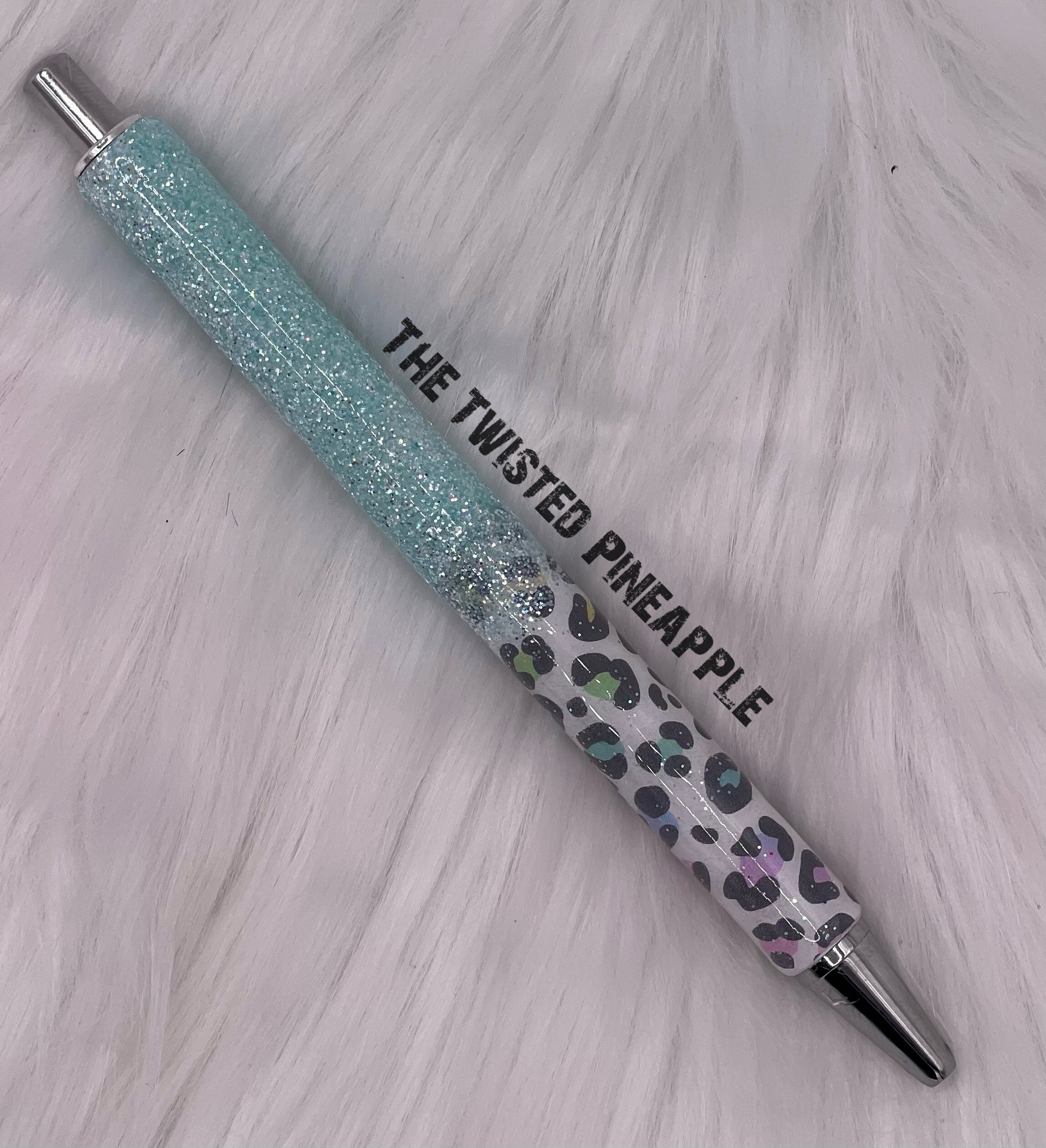 Blue Leopard Glitter Pen